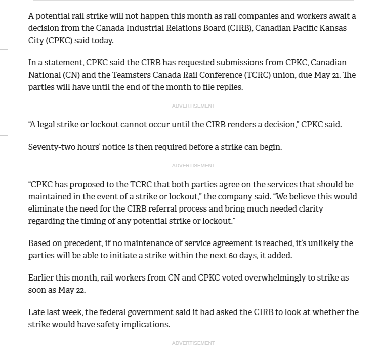 加拿大鐵路最新消息:罷工延遲。由于CIRB還未對(duì)鐵路罷工提案作出決定,本月加拿大鐵路將不會(huì)出現(xiàn)罷工情況。